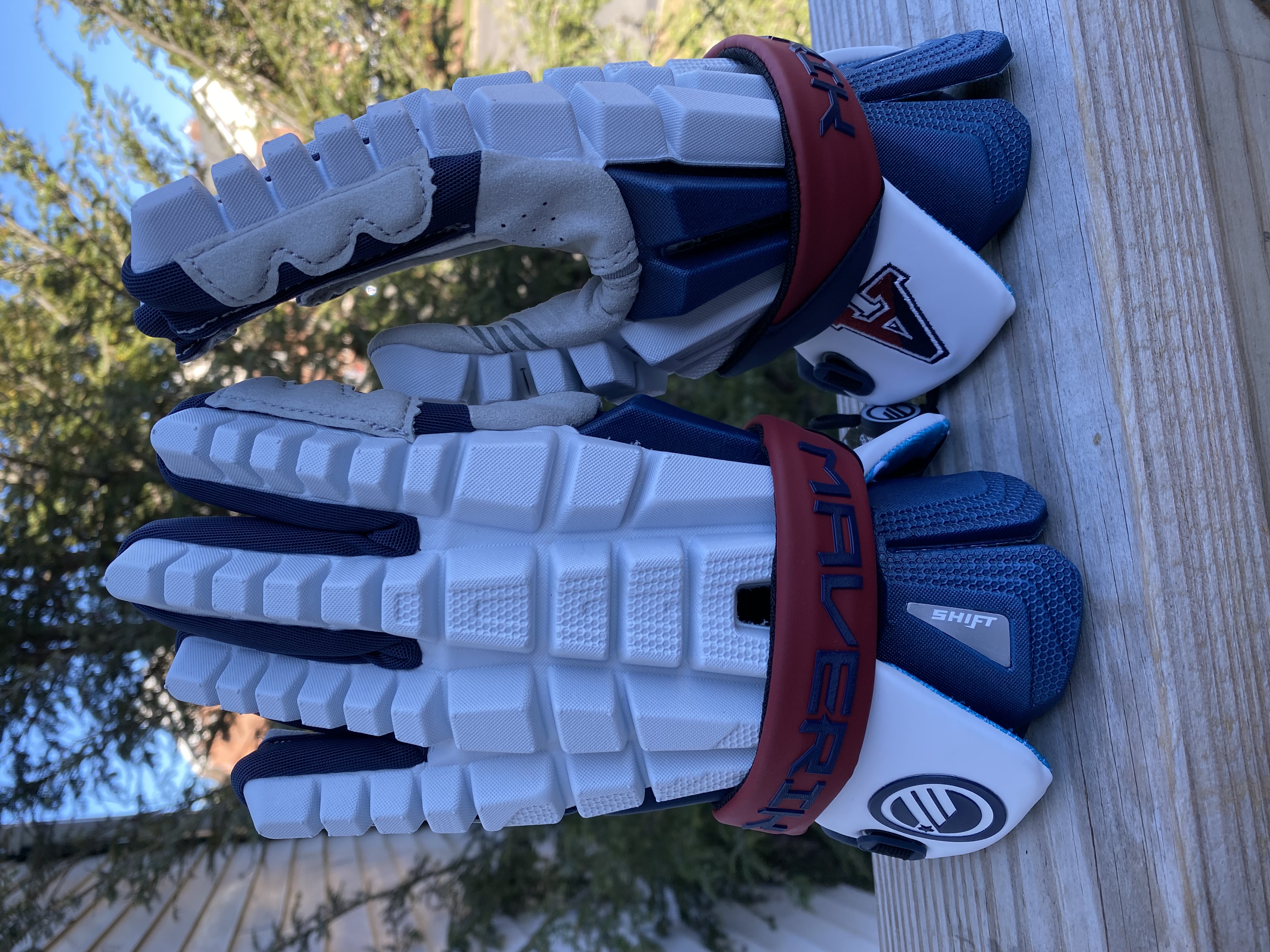 Maverik Shift Custom Team Glove w/custom colors and stitched school logo.