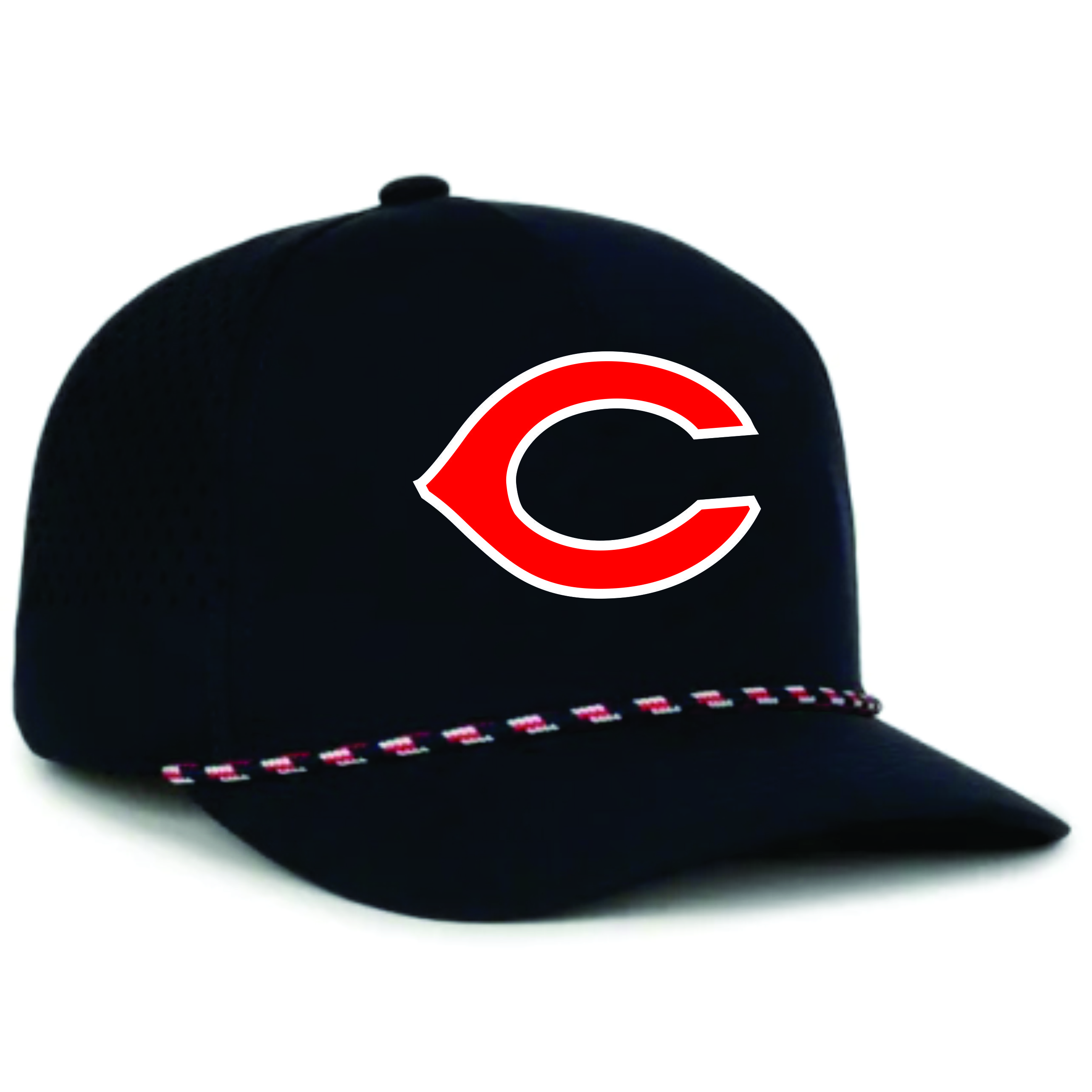 This high crown performance cap has a modern cord and moisture-wicking sweatband and perforated back panels. The UPF 50+ rating fabric serves outdoor performance for athletes and fans alike.
